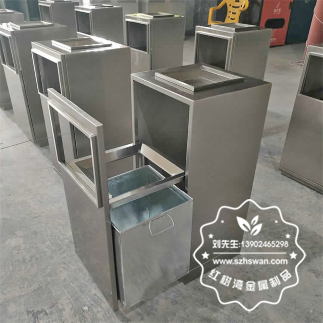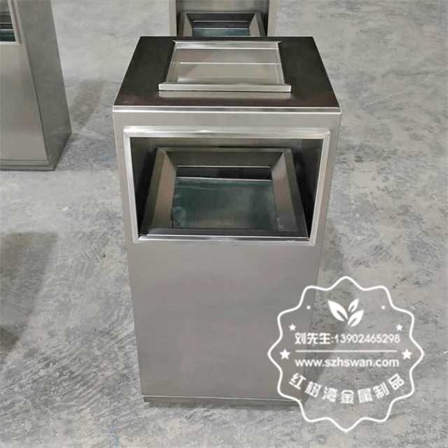 戶外小區廣場防指紋不銹鋼分類垃圾桶采用優質304不銹鋼無縫焊接成型,投口模具沖壓成型,邊角精細打磨拋光圓滑不割手,高檔大氣。
