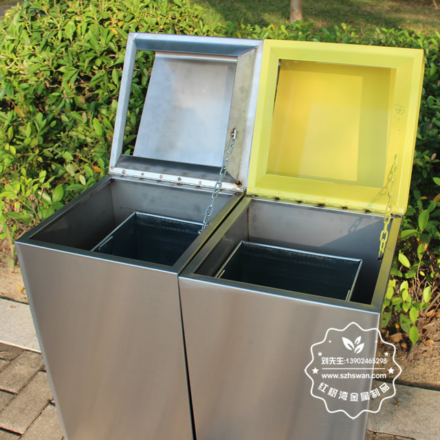 產品材質:不銹鋼垃圾桶采用201#,202#,304#優質不銹鋼材料模壓成型,堅固耐用;內外表面光潔,減少垃圾殘留,易于清潔;配置鍍鋅板內桶,便于垃圾清倒;