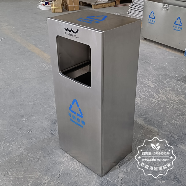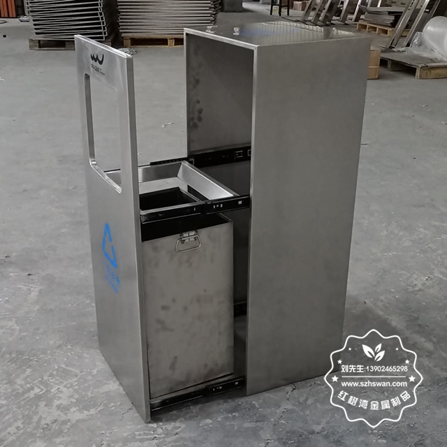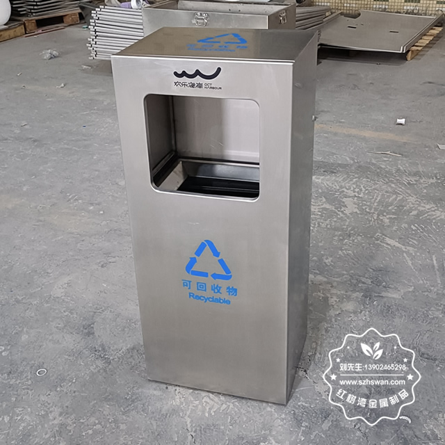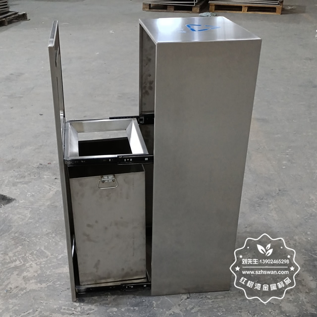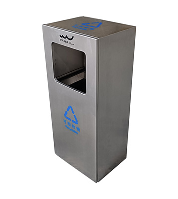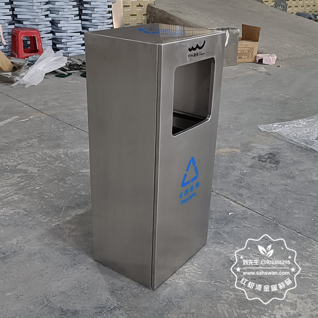 產品材質:戶外方形滑軌不銹鋼果皮箱采用201#,202#,304#優質不銹鋼材料模壓成型,堅固耐用;內外表面光潔,減少垃圾殘留,易于清潔;配置鍍鋅板內桶,便于垃圾清倒;