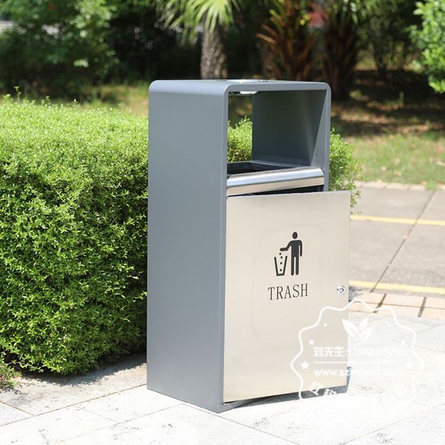 產品材質:貿易戶外單筒方形不銹鋼果殼箱采用201#,202#,304#優質不銹鋼材料模壓成型,堅固耐用;內外表面光潔,減少垃圾殘留,易于清潔;配置鍍鋅板內桶,便于垃圾清倒;