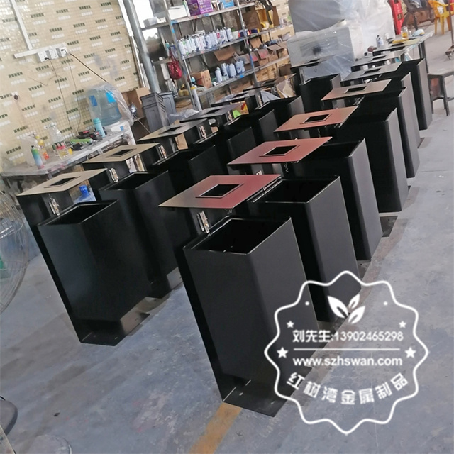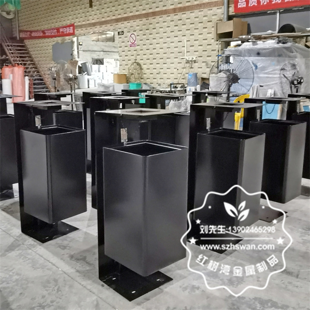 產品材質:戶外噴塑黑色不銹鋼垃圾桶單筒采用201#,202#,304#優質不銹鋼材料模壓成型,堅固耐用;內外表面光潔,減少垃圾殘留,易于清潔;配置鍍鋅板內桶,便于垃圾清倒;