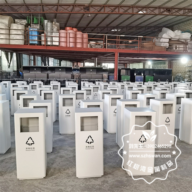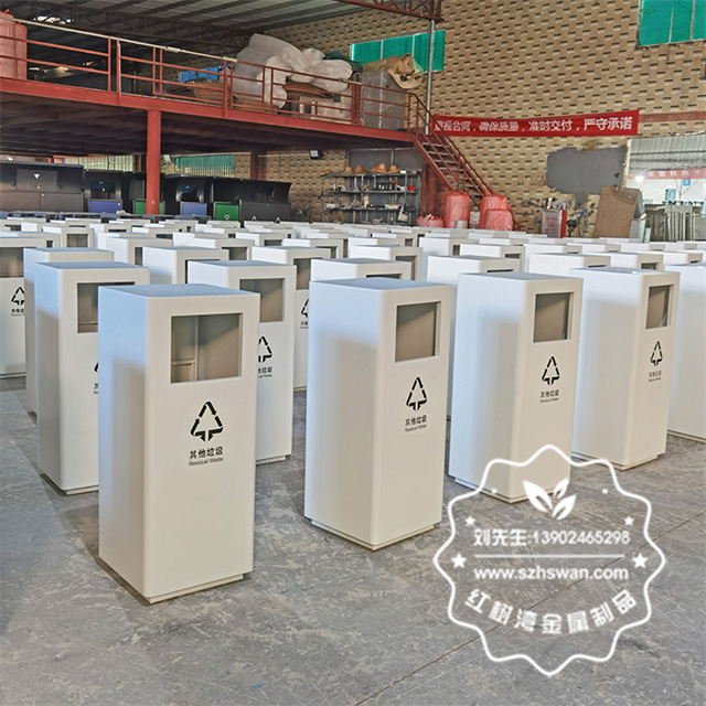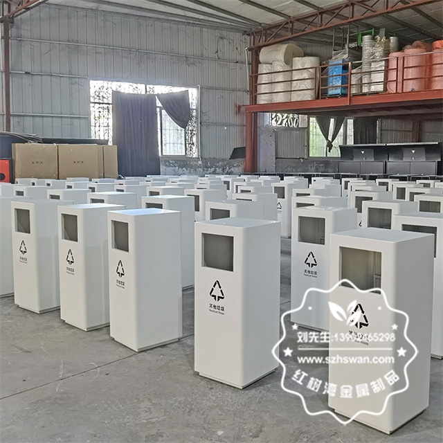 產品材質:戶外白色烤漆方形不銹鋼垃圾桶采用201#,202#,304#優質不銹鋼材料模壓成型,堅固耐用;內外表面光潔,減少垃圾殘留,易于清潔;配置鍍鋅板內桶,便于垃圾清倒;