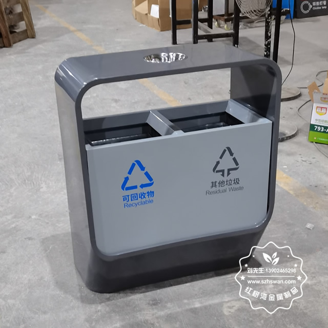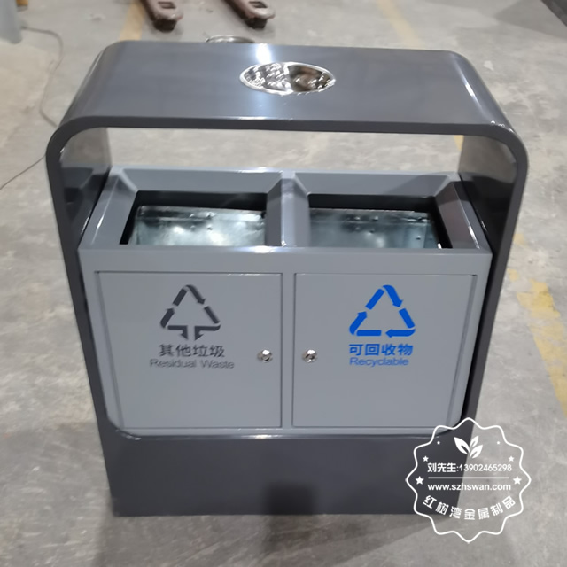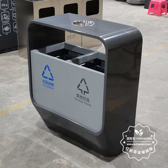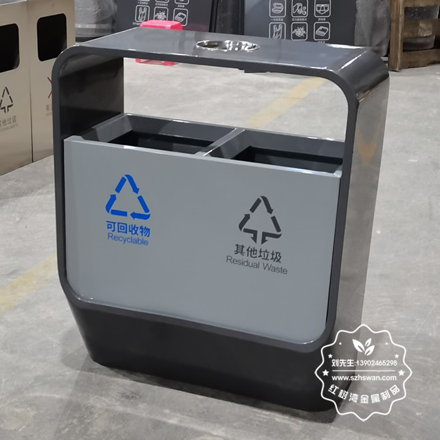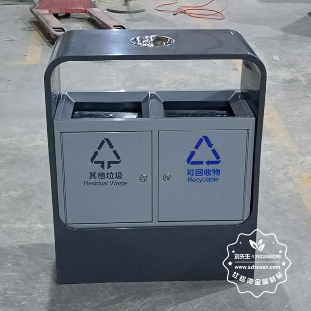 產品材質:戶外噴塑兩分類不銹鋼垃圾桶采用201#,202#,304#優質不銹鋼材料模壓成型,堅固耐用;內外表面光潔,減少垃圾殘留,易于清潔;配置鍍鋅板內桶,便于垃圾清倒;