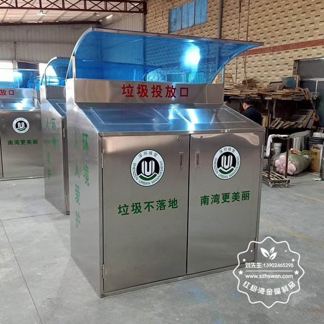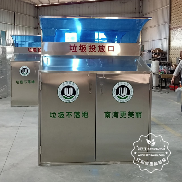產品材質:帶雨棚戶外不銹鋼分類垃圾桶采用201#,202#,304#優質不銹鋼材料模壓成型,堅固耐用;內外表面光潔,減少垃圾殘留,易于清潔;配置鍍鋅板內桶,便于垃圾清倒;