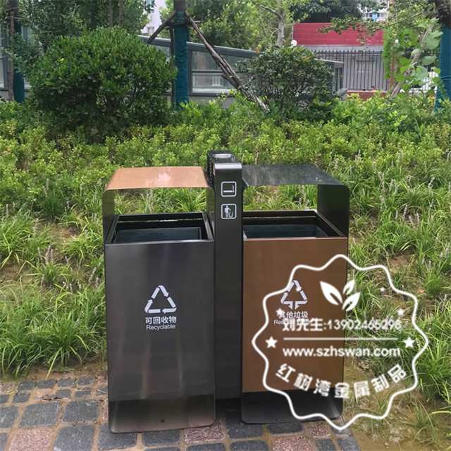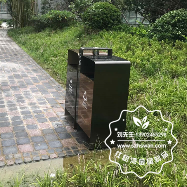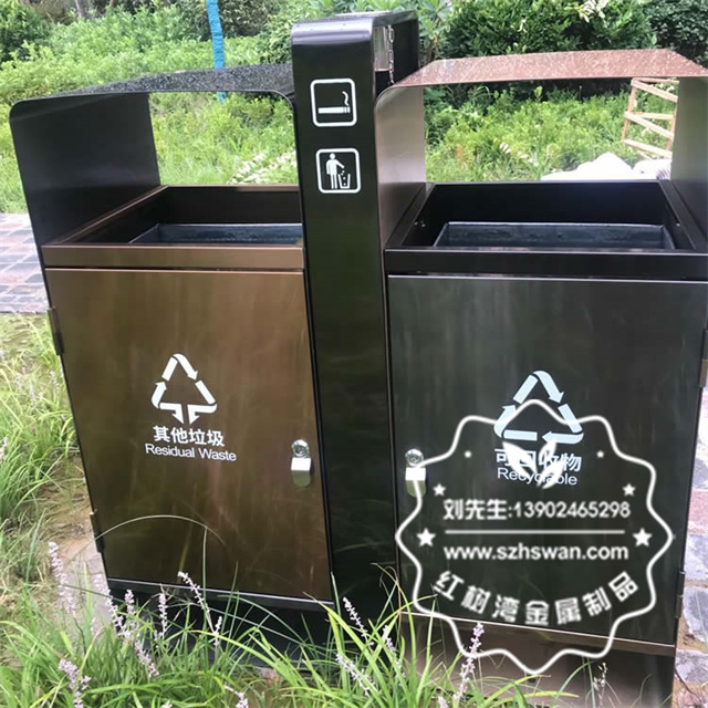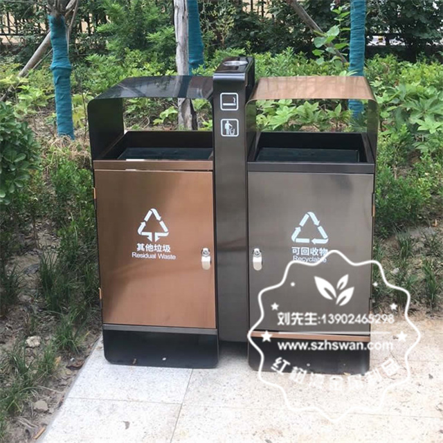 產品材質:戶外小區(qū)電鍍不銹鋼分類垃圾箱采用201#,202#,304#優(yōu)質不銹鋼材料模壓成型,堅固耐用;內外表面光潔,減少垃圾殘留,易于清潔;配置鍍鋅板內桶,便于垃圾清倒;