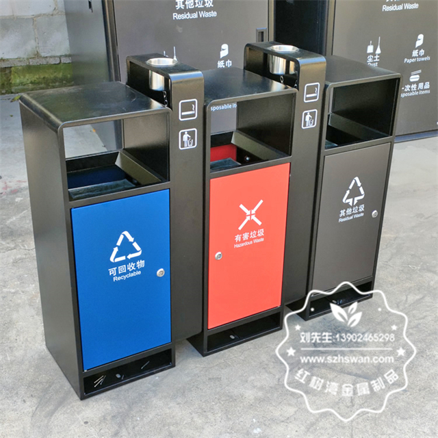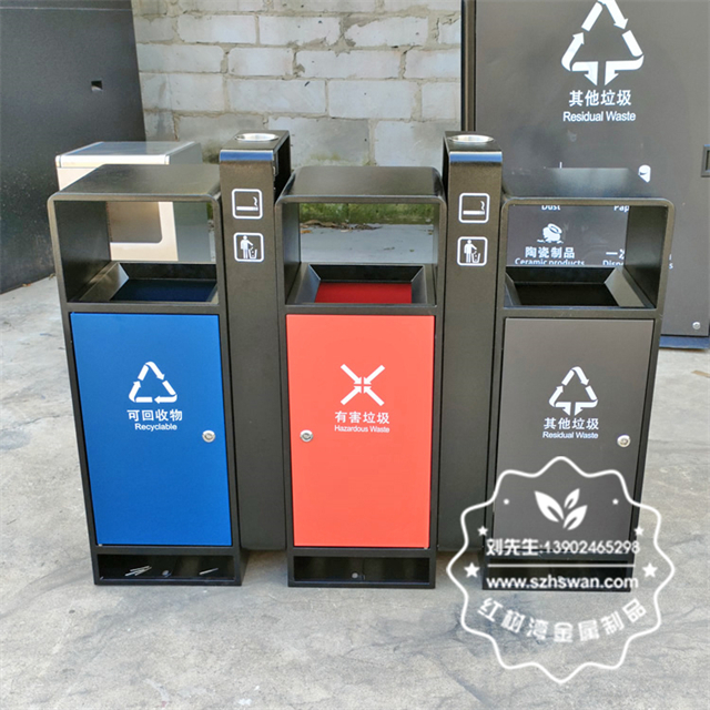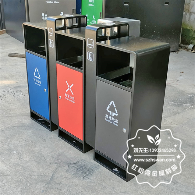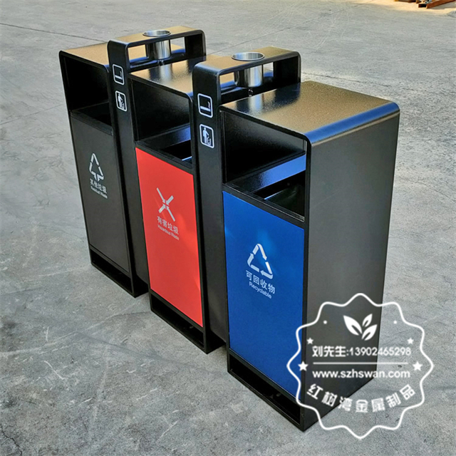 產品材質:戶外小區3色連體不銹鋼分類垃圾桶采用201#,202#,304#優質不銹鋼材料模壓成型,堅固耐用;內外表面光潔,減少垃圾殘留,易于清潔;配置鍍鋅板內桶,便于垃圾清倒;