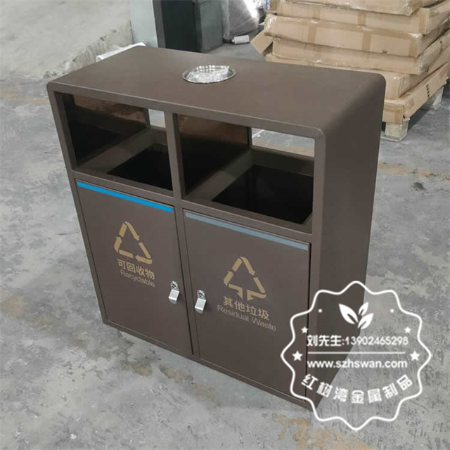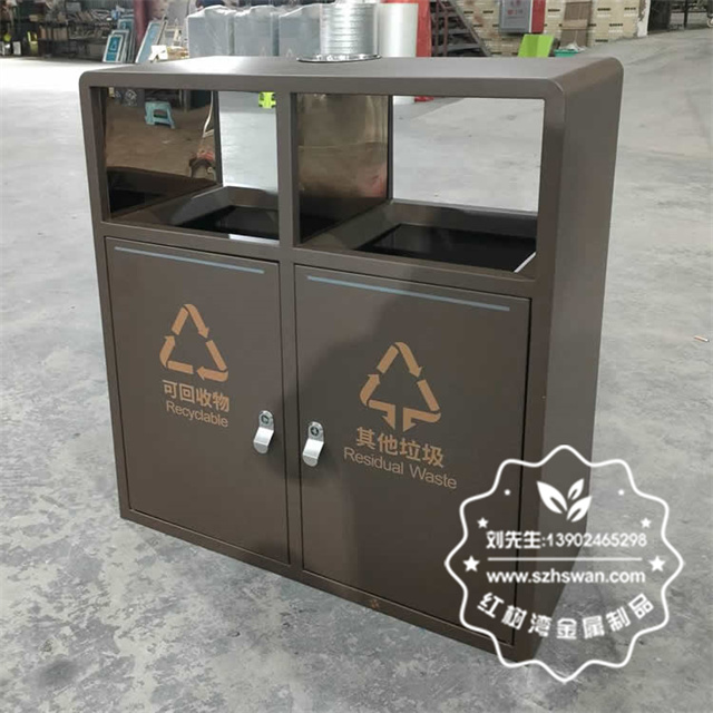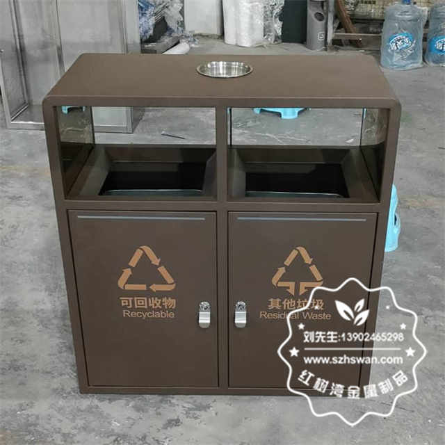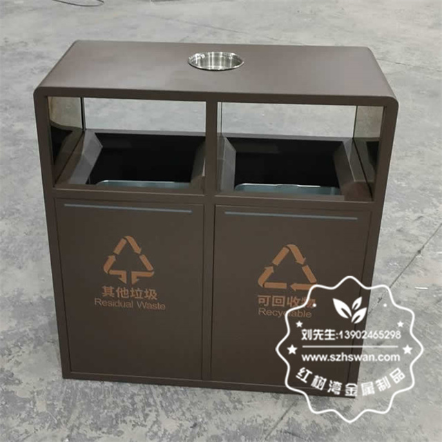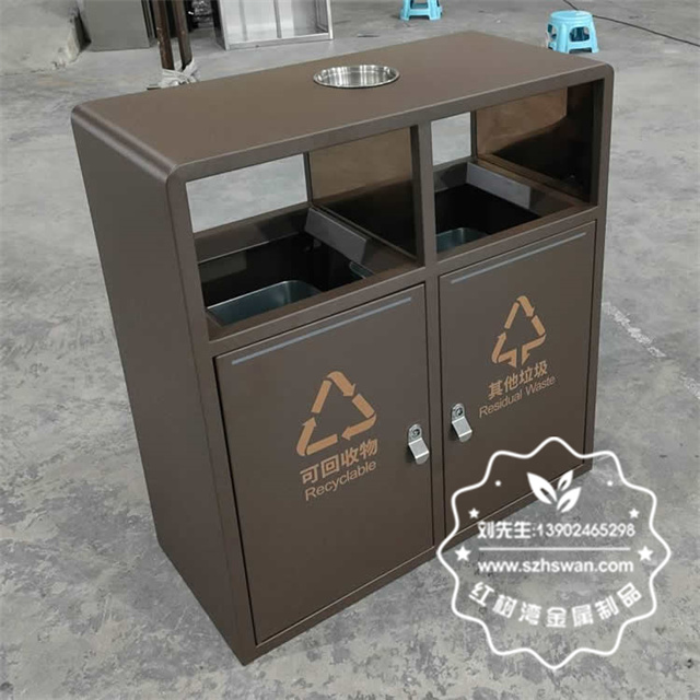 產(chǎn)品材質(zhì):戶外噴塑烤漆兩連體不銹鋼垃圾桶采用201#,202#,304#優(yōu)質(zhì)不銹鋼材料模壓成型,堅(jiān)固耐用;內(nèi)外表面光潔,減少垃圾殘留,易于清潔;配置鍍鋅板內(nèi)桶,便于垃圾清倒;