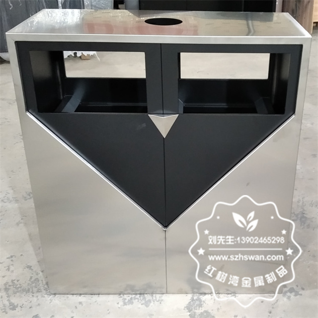 產品材質:戶外小區噴塑雙層不銹鋼分類垃圾桶采用201#,202#,304#優質不銹鋼材料模壓成型,堅固耐用;內外表面光潔,減少垃圾殘留,易于清潔;配置鍍鋅板內桶,便于垃圾清倒;