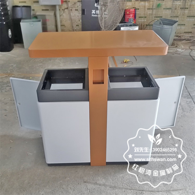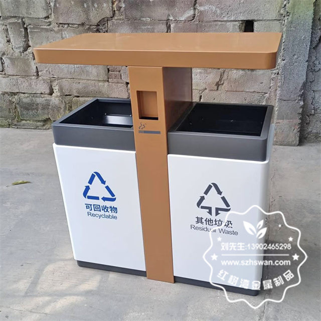 產(chǎn)品材質(zhì):戶外街道小區(qū)雙開門不銹鋼分類垃圾桶采用201#,202#,304#優(yōu)質(zhì)不銹鋼材料模壓成型,堅(jiān)固耐用;內(nèi)外表面光潔,減少垃圾殘留,易于清潔;配置鍍鋅板內(nèi)桶,便于垃圾清倒;