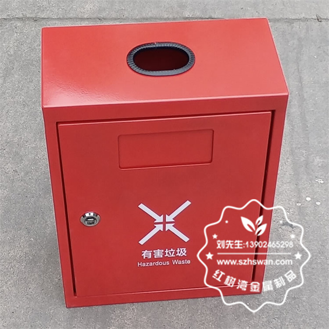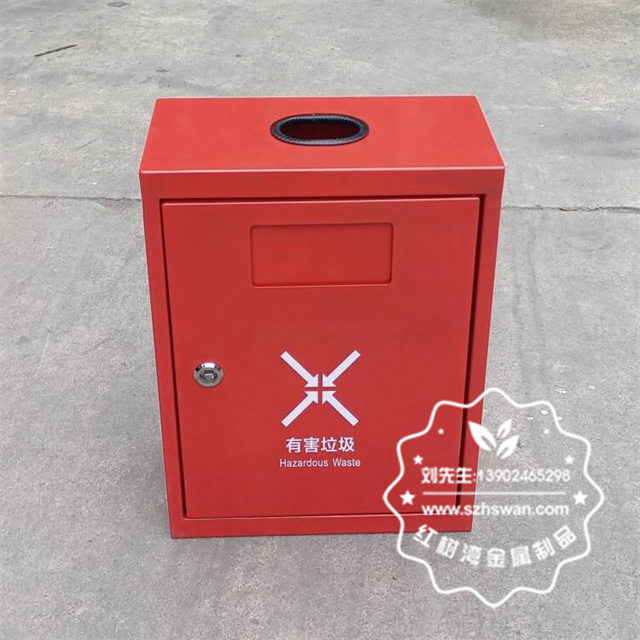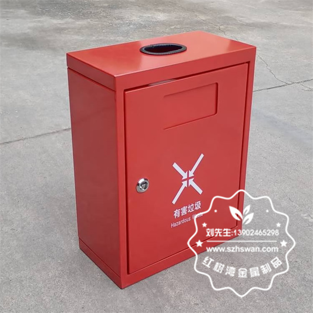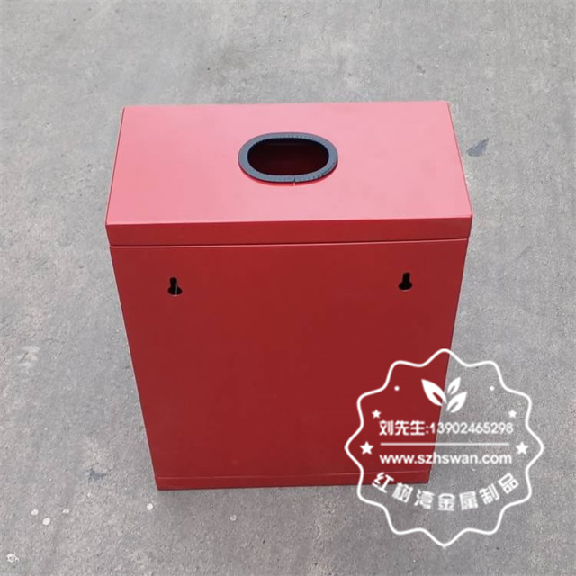 產品材質:戶外方形掛壁式紅色烤漆不銹鋼有害垃圾桶采用201#,202#,304#優質不銹鋼材料模壓成型,堅固耐用;內外表面光潔,減少垃圾殘留,易于清潔;配置鍍鋅板內桶,便于垃圾清倒;