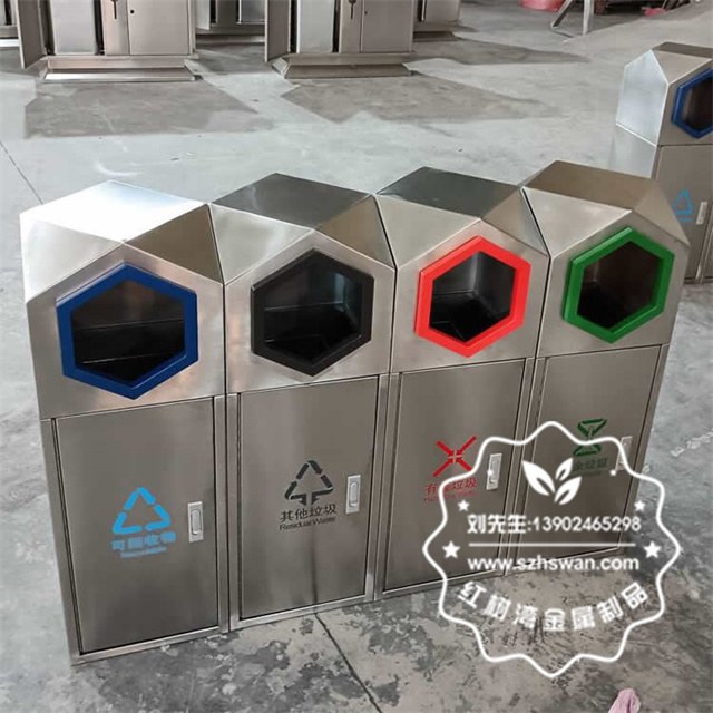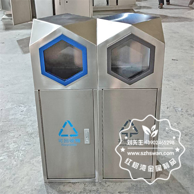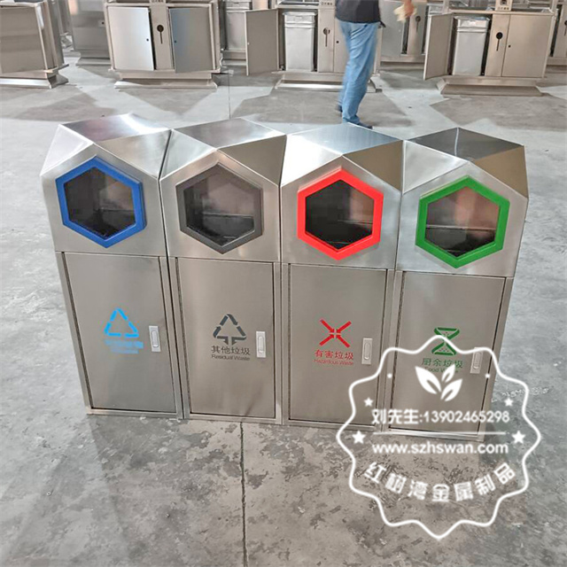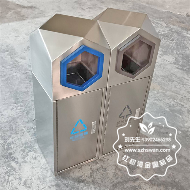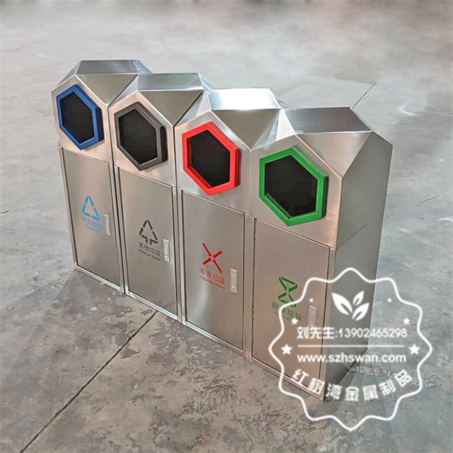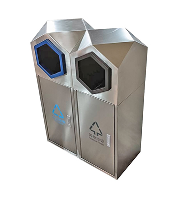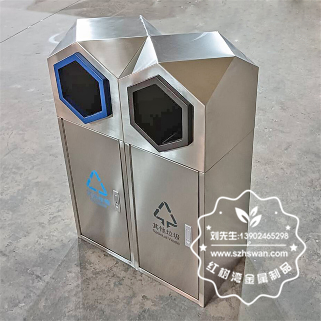 室外園林組合式菱形不銹鋼分類垃圾桶采用優(yōu)質(zhì)201不銹鋼無縫焊接成型,投口模具沖壓成型,邊角精細(xì)打磨拋光圓滑不割手,高檔大氣。