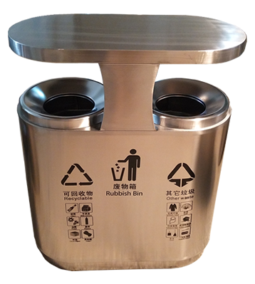 產品材質:小區物業創意雙分類不銹鋼垃圾箱采用201#,202#,304#優質不銹鋼材料模壓成型,堅固耐用;內外表面光潔,減少垃圾殘留,易于清潔;配置鍍鋅板內桶,便于垃圾清倒;