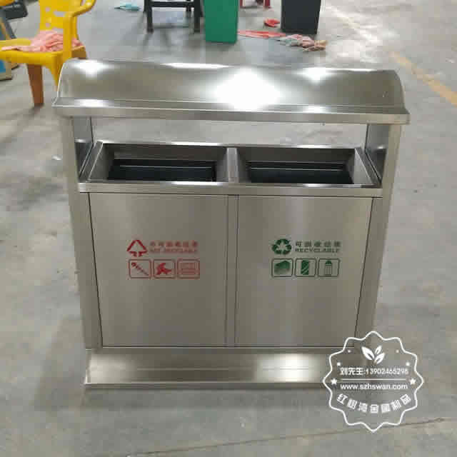 產品材質:戶外物業環保不銹鋼分類垃圾桶采用201#,202#,304#優質不銹鋼材料模壓成型,堅固耐用;內外表面光潔,減少垃圾殘留,易于清潔;配置鍍鋅板內桶,便于垃圾清倒;