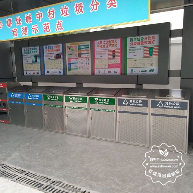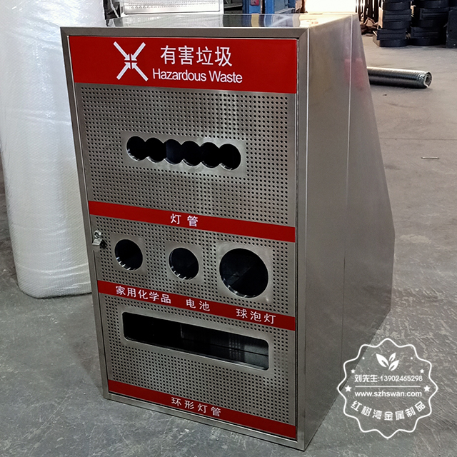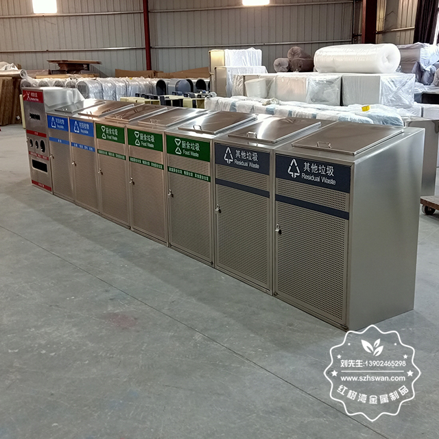 產品材質:小區大容量不銹鋼分類垃圾桶采用201#,202#,304#優質不銹鋼材料模壓成型,堅固耐用;內外表面光潔,減少垃圾殘留,易于清潔;配置鍍鋅板內桶,便于垃圾清倒;