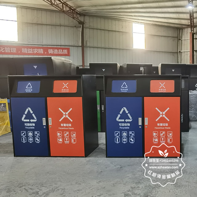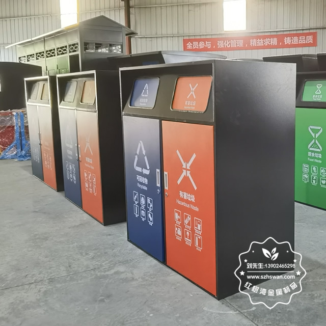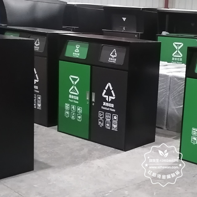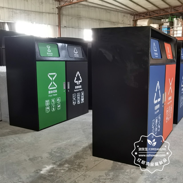 產(chǎn)品材質(zhì):小區(qū)有蓋鍍鋅板分類垃圾桶采用優(yōu)質(zhì)冷軋鋼經(jīng)除油-除銹-表調(diào)-磷化處理后,表面采用汽車靜電粉末經(jīng)過180~220℃高溫烤漆,使粉末熔化黏附在金屬表面,雙層防銹,漆面色澤耐久;