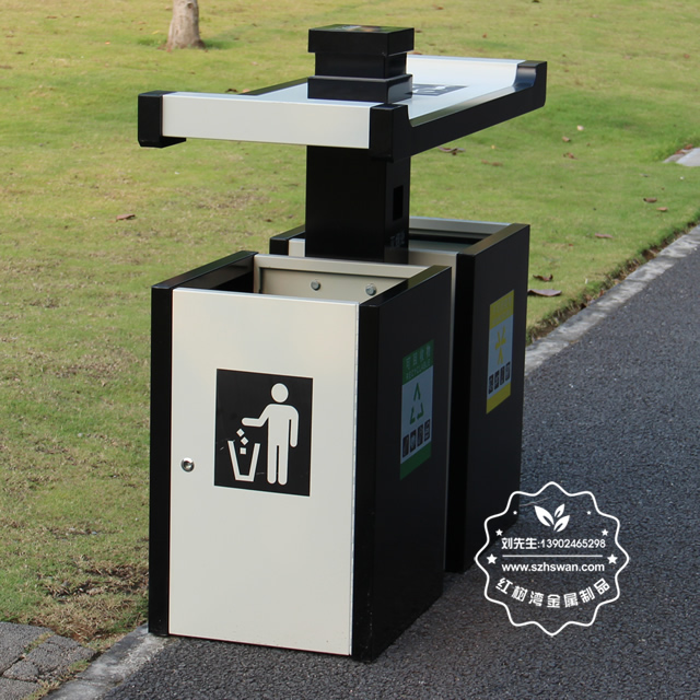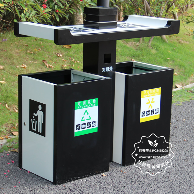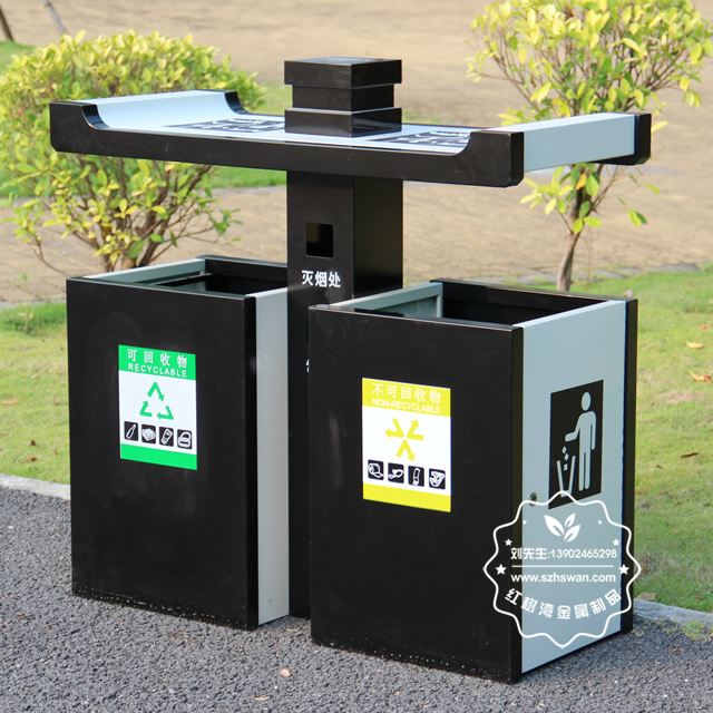 產(chǎn)品材質(zhì):戶外小區(qū)兩分類鋼制垃圾箱表面經(jīng)過除油、噴砂防銹處理后,再進行酸洗磷化處理;表面清理后整體進行靜電噴涂或烤漆處理,靜電噴涂是經(jīng)過流水線高溫固化爐固化后再出爐冷卻,漆面色澤耐久,防腐防銹;