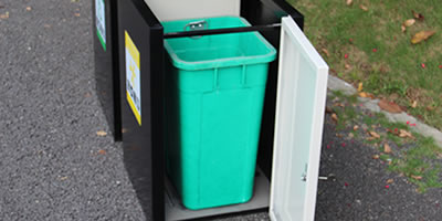 產(chǎn)品型號:F348戶外小區(qū)兩分類鋼制垃圾箱