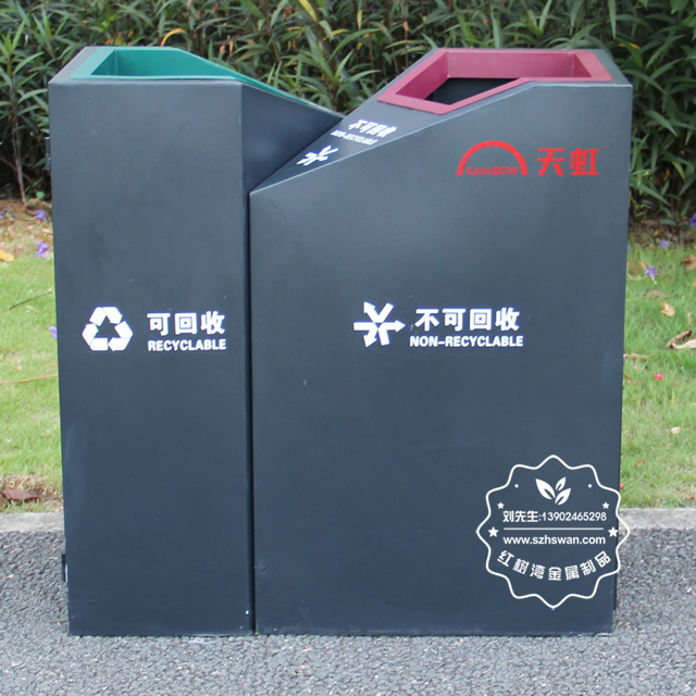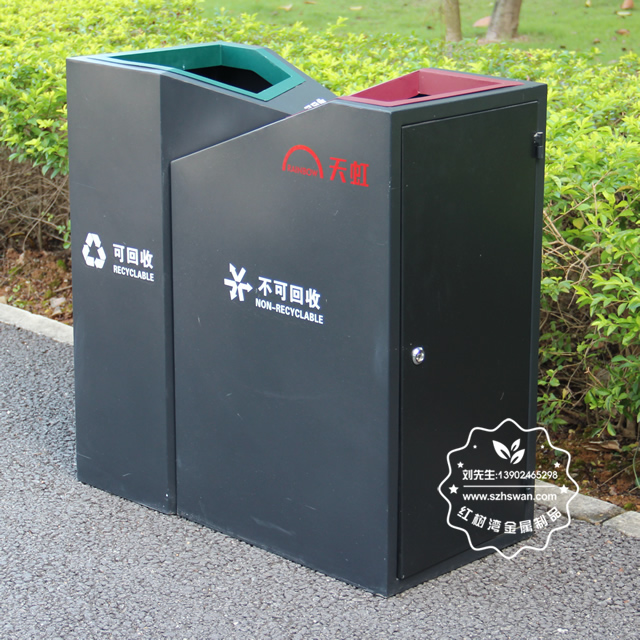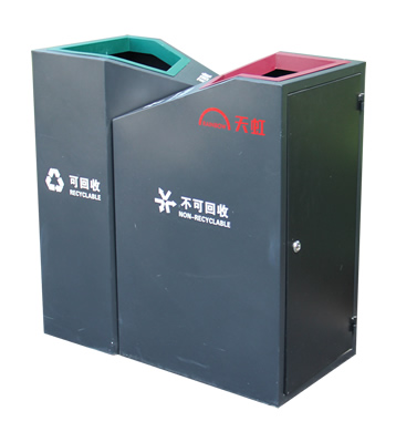 產(chǎn)品材質(zhì):商場直投口雙分類鋼制垃圾桶表面經(jīng)過除油、噴砂防銹處理后,再進行酸洗磷化處理;表面清理后整體進行靜電噴涂或烤漆處理,靜電噴涂是經(jīng)過流水線高溫固化爐固化后再出爐冷卻,漆面色澤耐久,防腐防銹;