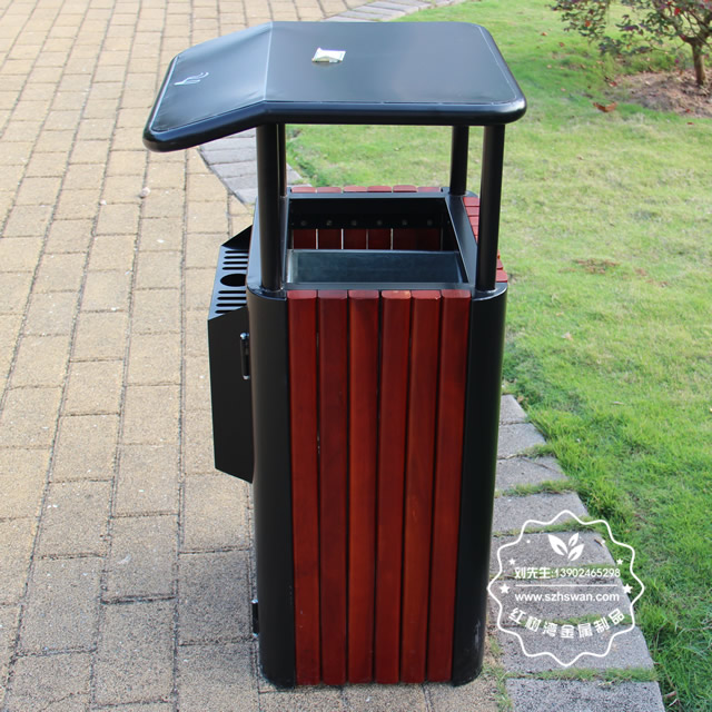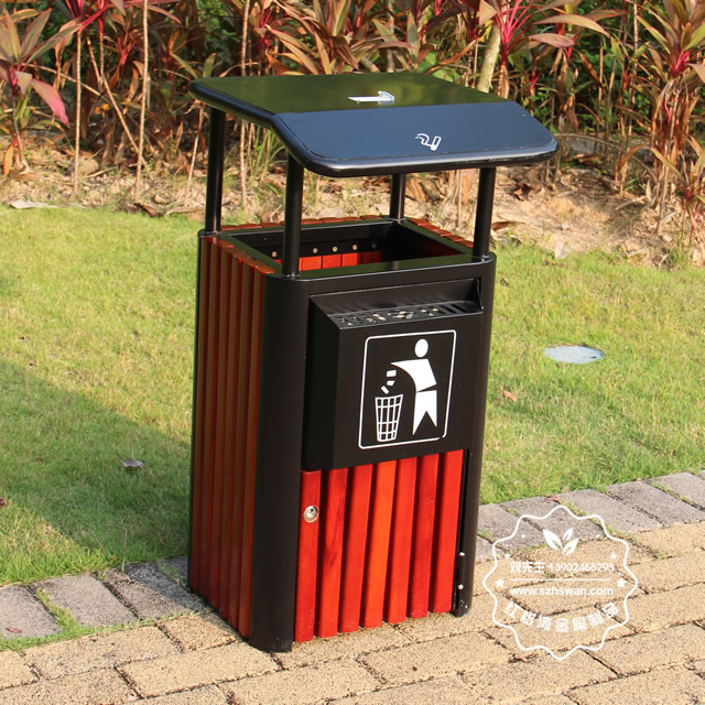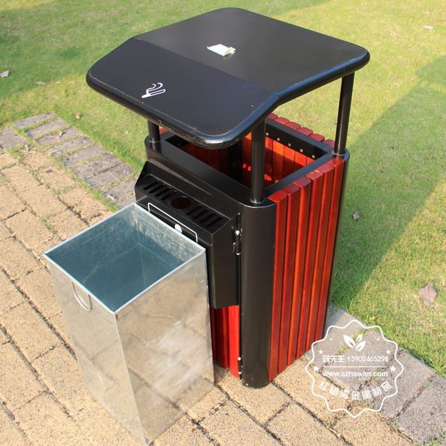 產品材質:獨立煙灰缸鋼木垃圾桶鋼木部分可選用優質進口山樟木、防腐木或塑木,經防腐烘干處理后加工成型。桶身框架采用冷軋鋼板加工,表面經酸洗磷化噴塑處理組裝而成,使其戶外耐候持久,防腐防蛀不變形等優點;