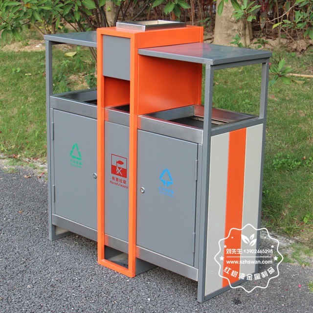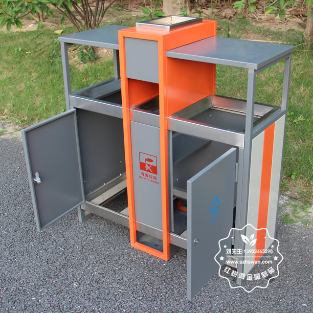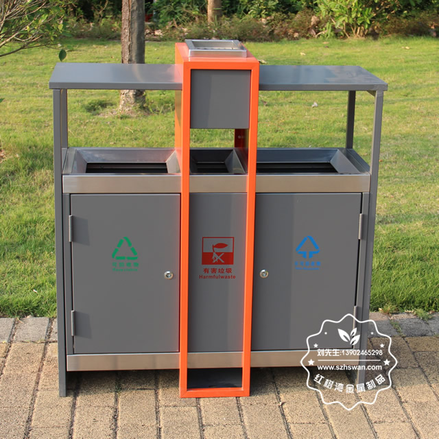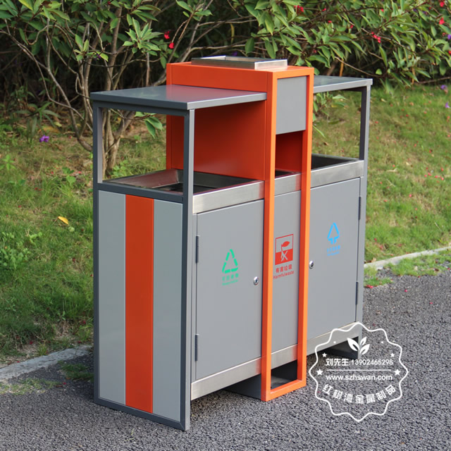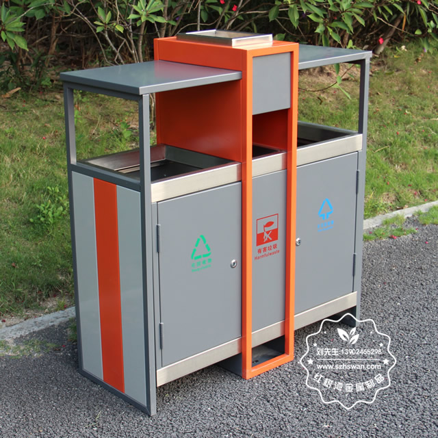 產品材質:環保鋼制垃圾桶表面經過除油、噴砂防銹處理后,再進行酸洗磷化處理;表面清理后整體進行靜電噴涂或烤漆處理,靜電噴涂是經過流水線高溫固化爐固化后再出爐冷卻,漆面色澤耐久,防腐防銹;