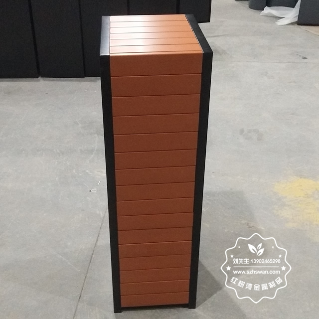 產品材質:室內方形塑木冷軋鋼板果皮箱表面經過除油、噴砂防銹處理后,再進行酸洗磷化處理;表面清理后整體進行靜電噴涂或烤漆處理,靜電噴涂是經過流水線高溫固化爐固化后再出爐冷卻,漆面色澤耐久,防腐防銹;