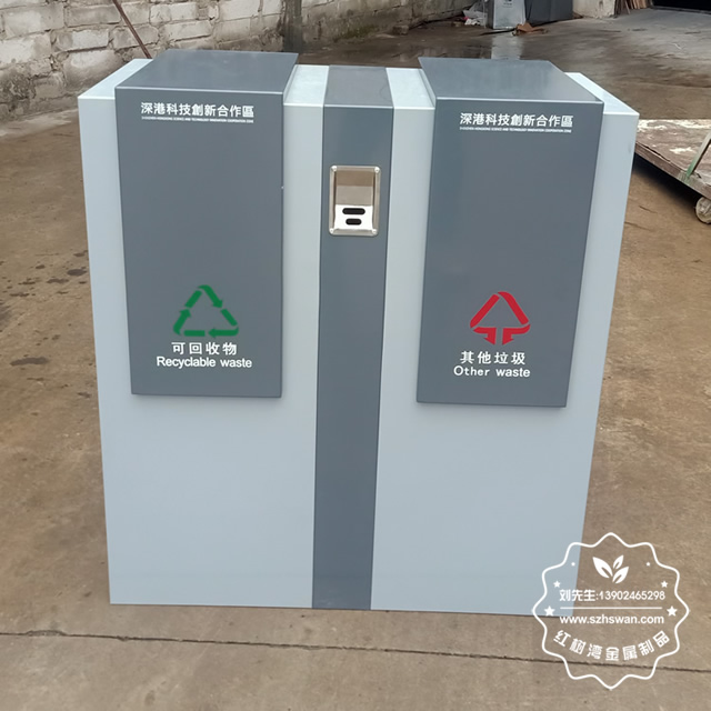 產(chǎn)品型號(hào):F411-2戶外街道鋼板分類垃圾箱