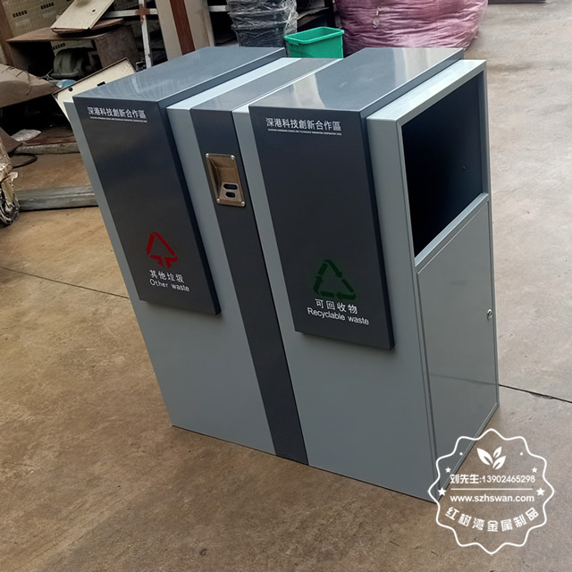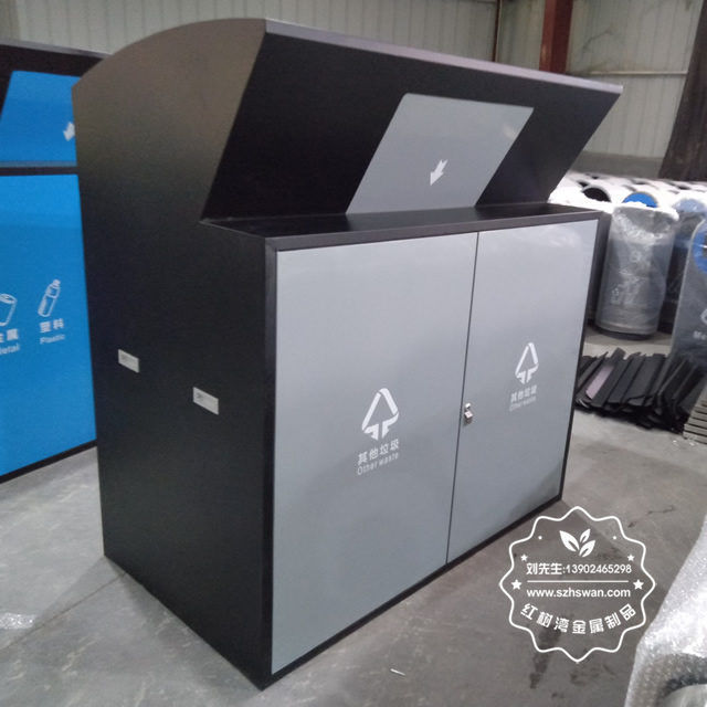 產(chǎn)品材質(zhì):戶外街道鋼板分類垃圾箱表面經(jīng)過(guò)除油、噴砂防銹處理后,再進(jìn)行酸洗磷化處理;表面清理后整體進(jìn)行靜電噴涂或烤漆處理,靜電噴涂是經(jīng)過(guò)流水線高溫固化爐固化后再出爐冷卻,漆面色澤耐久,防腐防銹;