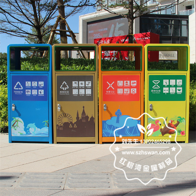 創意景區分類不銹鋼垃圾桶:這種像垃圾桶的機器人,腦袋、身子是方形的,手臂能自由屈伸,腿腳也能伸縮自如。它大約高1.4米。這種垃圾桶的優點是:受電腦控制。電腦主要在機器人的身子里,兩個攝像機當作機器人的“眼睛"當機器人看到有人丟垃圾的時候,它就會把蓋子打開,等垃圾倒進垃圾桶里的時候,電腦就會把可以利用的廢品、泥沙和土塊等分開,同時打開頭與身子之間的隔板這些廢品就分別進入“身子"中的兩格內。你如果仔細觀察就會發現桶臂上有兩“壓縮機"。當垃圾倒入后,這兩個“壓縮機"就開始工作。它不斷伸把垃圾桶內的垃圾壓緊,使垃圾的占據空間的面積很小很小。 如果倒垃圾的同學很矮,夠不著垃圾桶的邊沿,怎么辦?這時垃圾桶的腳會自動縮短,使小朋友豪不費力的就可以把垃圾放進垃圾桶里,同學們來清理垃圾桶的時候可以把廢紙、塑料,賣給廢品收購站,其余的東西就處理掉。