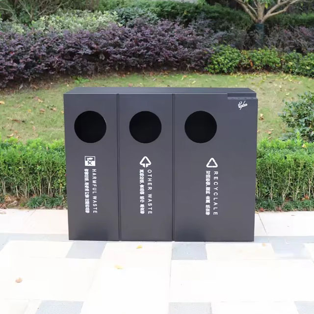 其廣泛的適用性使其成為各類戶外場所的理想選擇。在城市街道上,它為行人提供便捷的垃圾分類服務,助力城市保持整潔美觀;在公園、海濱浴場等休閑場所,它與自然景觀相得益彰,引導游客養成良好的環保習慣;在學校、醫院等公共機構周邊,它以高效的分類功能和衛生的設計,維護著公共環境的健康與安全。  這款出口級戶外黑色噴粉不銹鋼三分類垃圾桶,將實用功能與美學設計完美結合,為戶外垃圾分類提供了卓越的解決方案。讓我們共同選擇它,為打造更美好的地球家園貢獻一份力量。如果你對這款垃圾桶感興趣,或者有任何關于垃圾分類的見解,歡迎在評論區留言分享,期待與你交流。