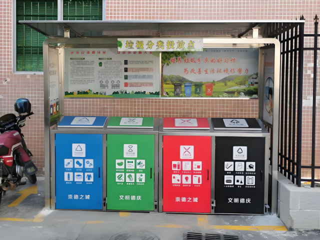 定制化分類垃圾箱可根據社區需求靈活劃分投放區域,常見配置為“可回收物+有害垃圾+廚余垃圾+其他垃圾”四分類模式,亦可按地方政策調整類別。每個投口采用鮮明的顏色區分(如藍色、紅色、綠色、灰色),并搭配清晰圖標與文字說明,降低居民誤投率。內部設有獨立隔間與可拆卸內桶,方便分類收集與清潔管理,避免交叉污染。