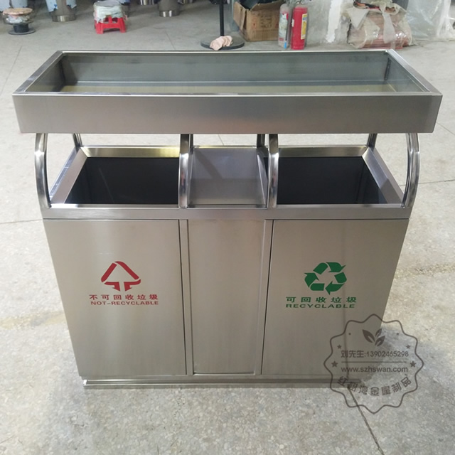 分類回收垃圾箱就是室內(nèi)戶外容納承載垃圾廢物的容器,一個外行人叫的一個容器有的叫垃圾桶、垃圾箱或者果皮箱,廠家告訴你四四方方長寬不依我們叫垃圾箱,高挑的身材奇形怪狀的容器我們垃圾桶,擺放室內(nèi)四方形的容器我們叫果皮箱,一個長方形的垃圾容納箱帶兩個內(nèi)筒可以回收垃圾的我們專業(yè)人士叫分類垃圾箱,我們介紹過垃圾箱有很多種材質(zhì)每一種材質(zhì)都可以制造出不同的垃圾箱垃圾桶果皮箱,小編今天主要說的是分類回收垃圾箱我們這邊有很多分類垃圾回收箱作品可以分享給大家欣賞。