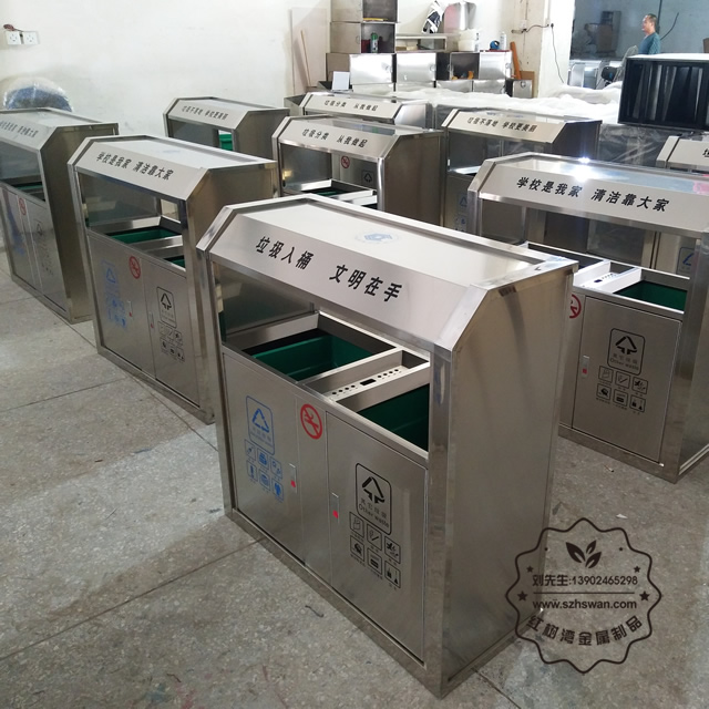 深圳市紅樹灣金屬制品有限公司做過很多各種各樣的不銹鋼垃圾桶,不銹鋼材質(zhì)的垃圾桶很多優(yōu)勢,現(xiàn)在很多的金屬產(chǎn)品我們用鍋碗調(diào)盆、水杯很多都是不銹鋼的,安全衛(wèi)生不易破損壞,下面紅樹灣金屬制品的小編就發(fā)一些我們廠家生產(chǎn)做過的垃圾桶圖片給你們欣賞。