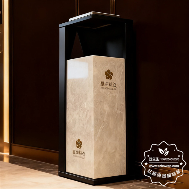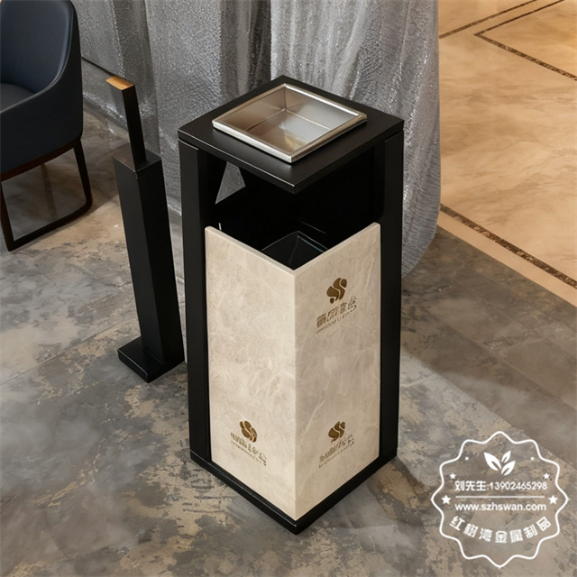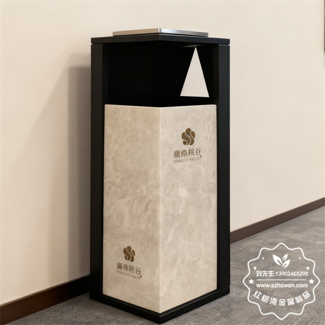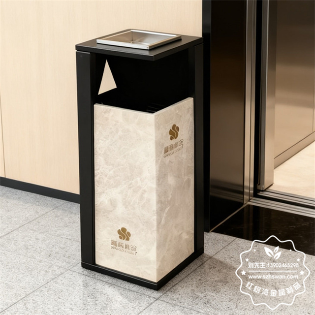 西藏室內酒店大理石紋不銹鋼垃圾桶