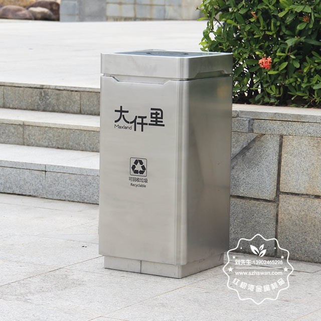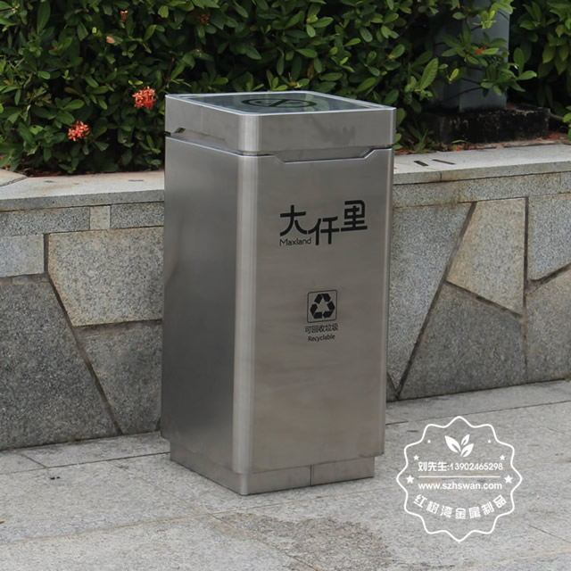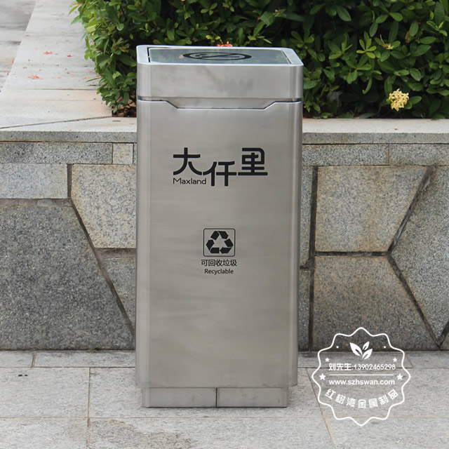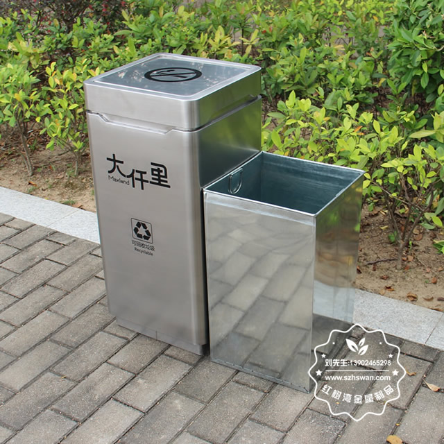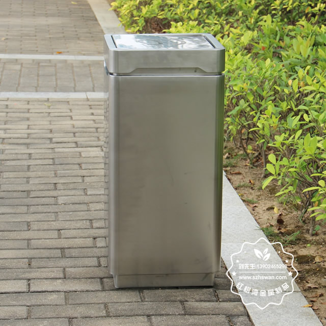 產品材質:室內方形搖擺蓋不銹鋼分類垃圾桶采用201#,202#,304#優質不銹鋼材料模壓成型,堅固耐用;內外表面光潔,減少垃圾殘留,易于清潔;配置鍍鋅板內桶,便于垃圾清倒;