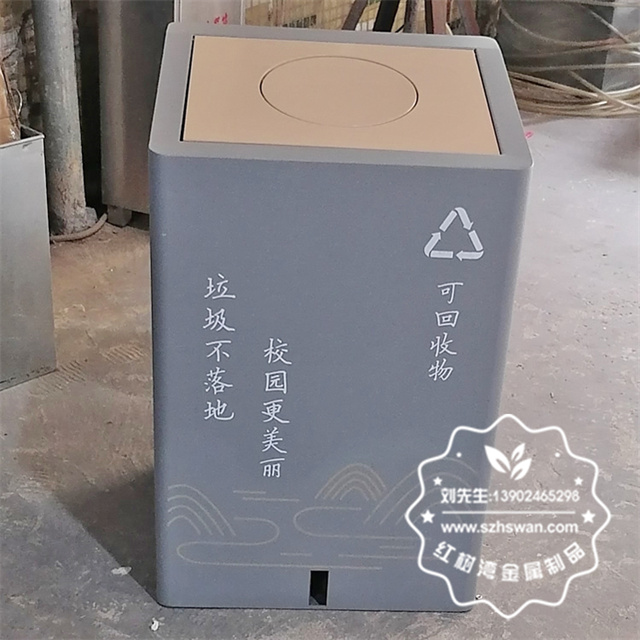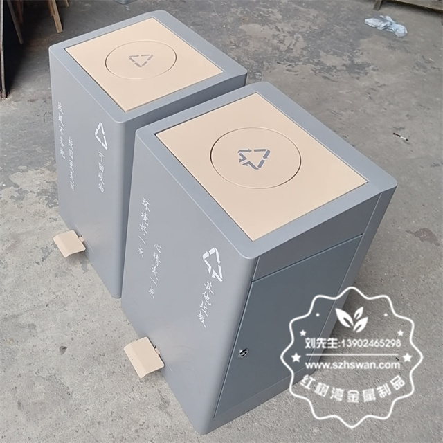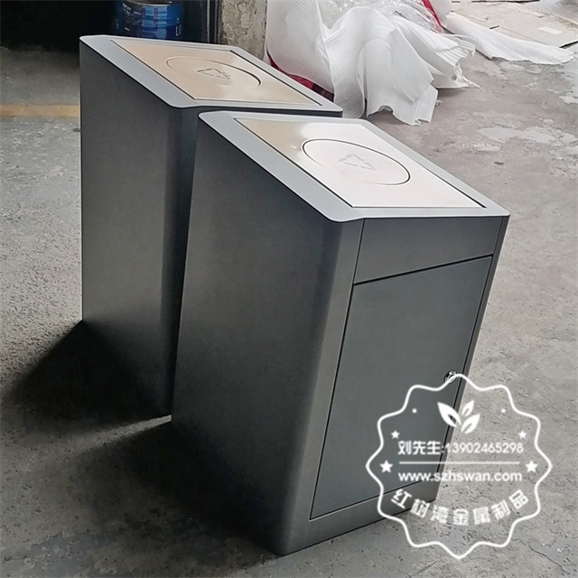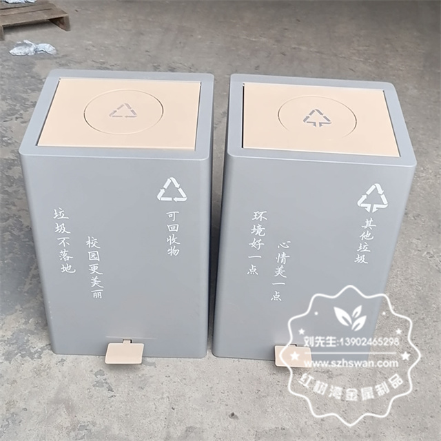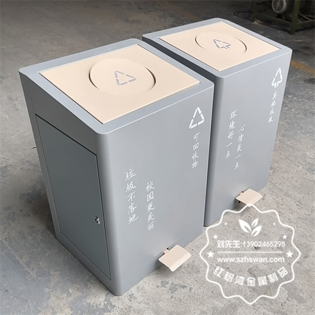 產品材質:室內學校雙開蓋腳踏式不銹鋼分類垃圾桶采用201#,202#,304#優質不銹鋼材料模壓成型,堅固耐用;內外表面光潔,減少垃圾殘留,易于清潔;配置鍍鋅板內桶,便于垃圾清倒;