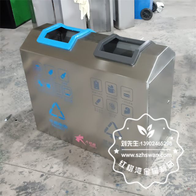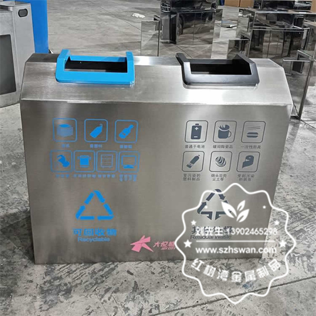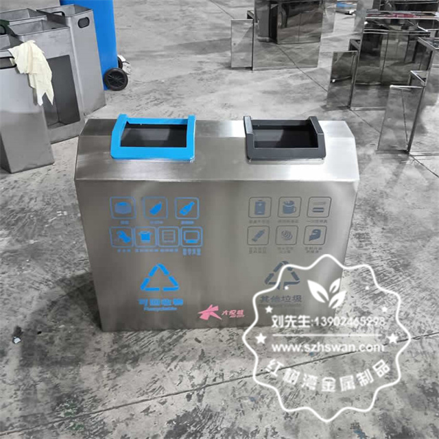 產(chǎn)品材質(zhì):室內(nèi)車站商用不銹鋼分類垃圾桶采用201#,202#,304#優(yōu)質(zhì)不銹鋼材料模壓成型,堅(jiān)固耐用;內(nèi)外表面光潔,減少垃圾殘留,易于清潔;配置鍍鋅板內(nèi)桶,便于垃圾清倒;