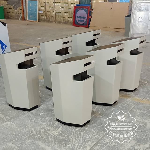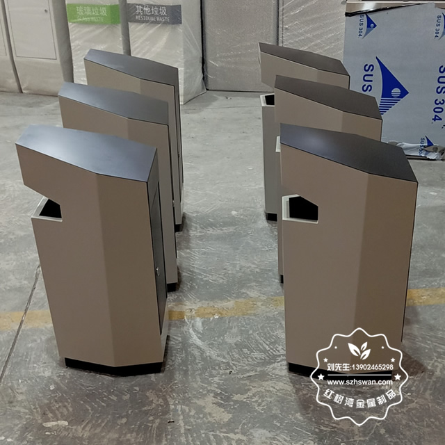 室內(nèi)噴塑異形不銹鋼果皮箱采用優(yōu)質(zhì)201不銹鋼無縫焊接成型,投口模具沖壓成型,邊角精細打磨拋光圓滑不割手,高檔大氣。