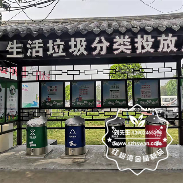 常見的垃圾分類亭,通常也稱為:垃圾亭、分類垃圾亭、垃圾分類回收亭等等。慣常一字排開擺著垃圾桶。而紅樹灣垃圾桶環保垃圾分類亭里卻看不到垃圾桶,分類垃圾桶都隱身到了地下,投放環境更清潔、更美觀。對應的不銹鋼投放器正面分別印刷可回收垃圾、有害垃圾、廚房干濕垃圾等細分標識,一目了然讓垃圾分類更方便。