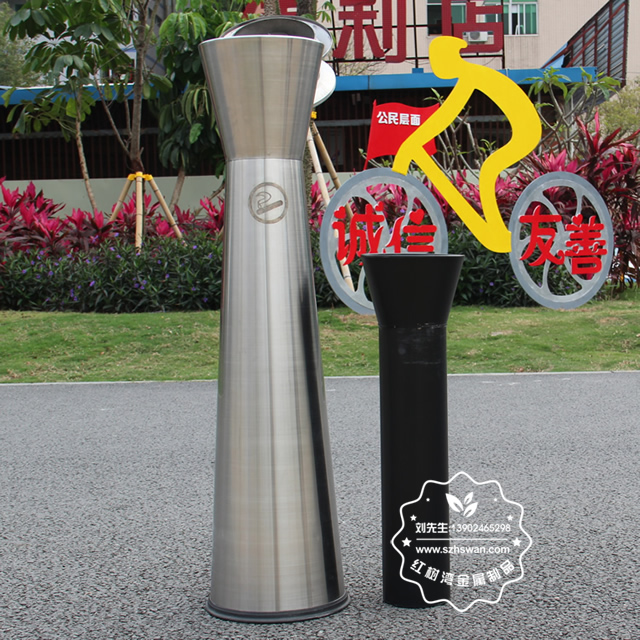產品材質:室內圓柱形立式不銹鋼煙灰桶采用優質不銹鋼材料經專業除銹處理,表面采用專用戶外高溫烤漆,保證色彩鮮艷持久,有效防止生銹。外飾大理石表面呈金黃色,光滑亮麗彰顯高貴本色;