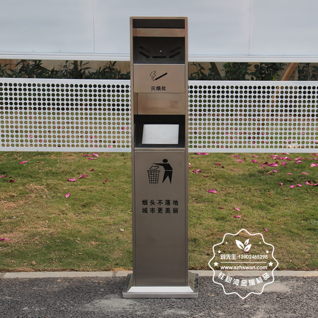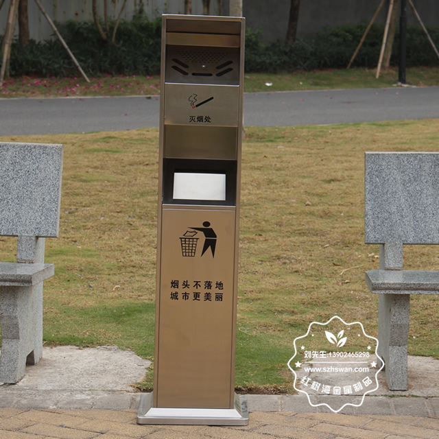 產(chǎn)品材質(zhì):方形立式不銹鋼煙灰柱垃圾桶采用優(yōu)質(zhì)不銹鋼材料經(jīng)專(zhuān)業(yè)除銹處理,表面采用專(zhuān)用戶(hù)外高溫烤漆,保證色彩鮮艷持久,有效防止生銹。外飾大理石表面呈金黃色,光滑亮麗彰顯高貴本色;